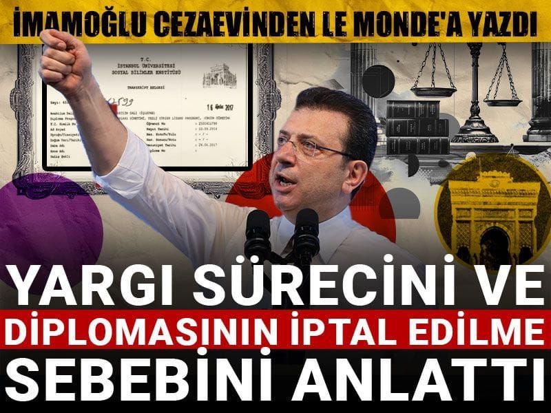 7 aydır tutuklu bulunan İstanbul Büyükşehir Belediye (İBB) Başkanı ve CHP'nin Cumhurbaşkanı adayı Ekrem İmamoğlu, Fransa'nın önde gelen gazetelerinden Le Monde için bir makale kaleme aldı. İmamoğlu, yargı sürecini anlatırken, dünyaya da otoriterleşme uyarısında bulundu.