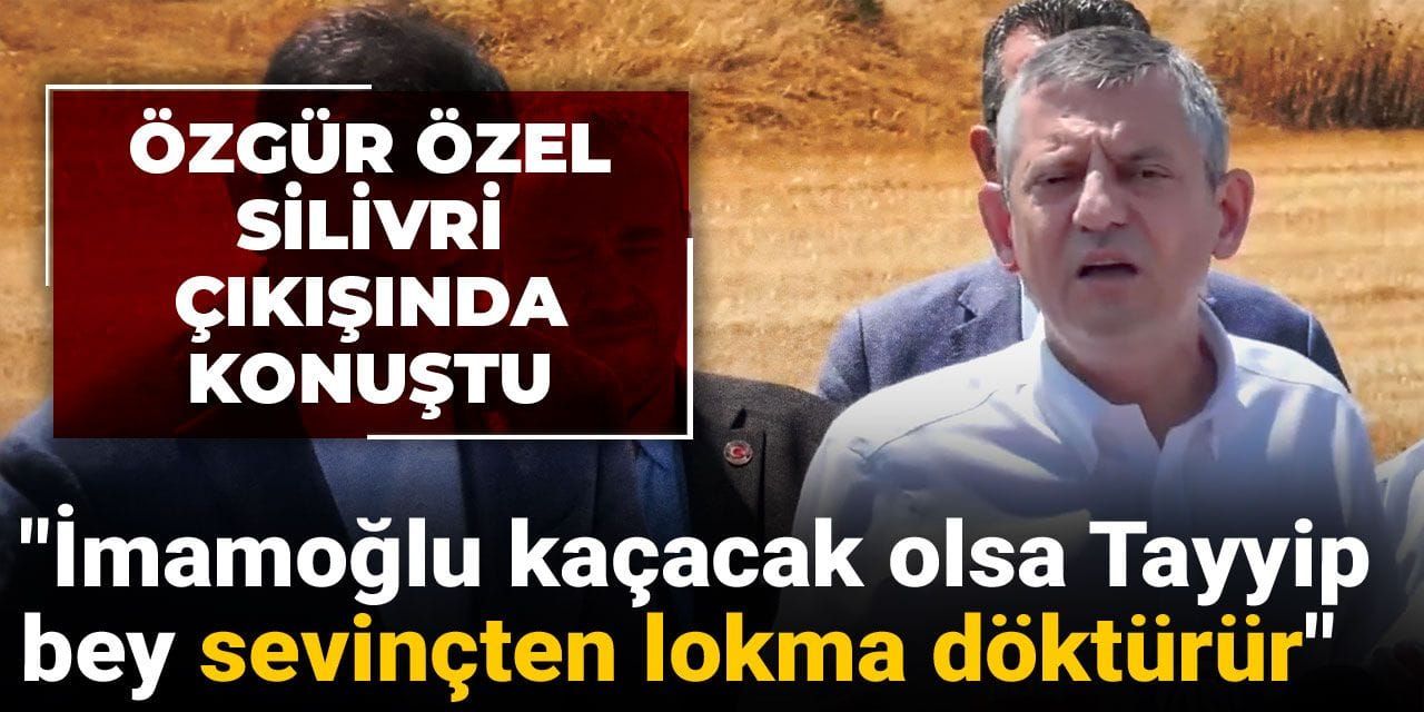 İmamoğlu'nun kaçma şüphesiyle tutulduğunu söyleyen Özel, "Ekrem İmamoğlu kaçsa Tayyip bey Saray'ın bahçesinde lokma döktürür Ekrem İmamoğlu'nun tek korkuttuğu kişi Tayyip Erdoğan. Ekrem İmamoğlu herkesin yüzünde tebessüm Tayyip Erdoğan'ın yüzünde korku ve öfke yaratıyor" dedi.