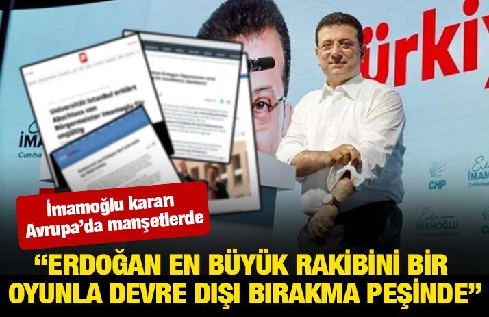 İstanbul Üniversitesi Yönetim Kurulu’nun, Ekrem İmamoğlu’nun diplomasını iptal etmesi, Avrupa medyasında da manşetlere çıktı. Alman, Avusturya, İngiltere medyası haberi acil olarak duyurdu.