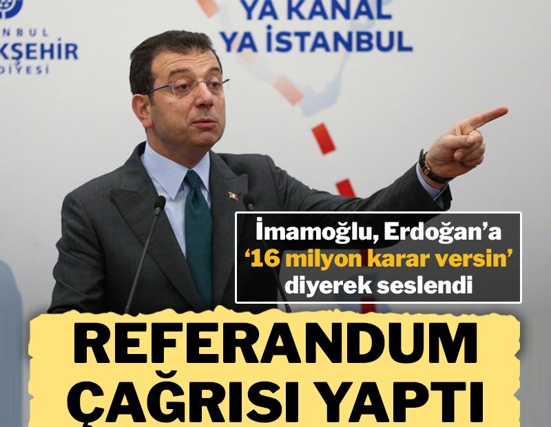 Cumhurbaşkanı Recep Tayyip Erdoğan'a seslenen İmamoğlu, "Kanal İstanbul Referandumu" için sandıkların kurulmasını teklif etti.