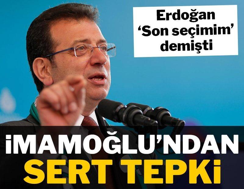 İmamoğlu, Cumhurbaşkanı Erdoğan’ın "Son seçimim" açıklamasına sert tepki göstererek şunları söyledi: