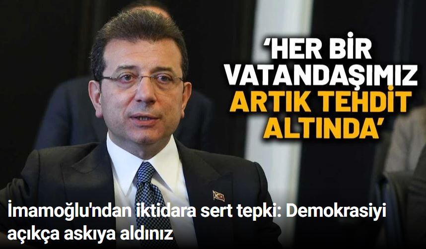 İktidarı kast ederek "Demokrasiyi açıkça askıya aldınız" diyen İmamoğlu, yaşananların "hukuk ve adaletten uzak olduğunu" vurguladı.