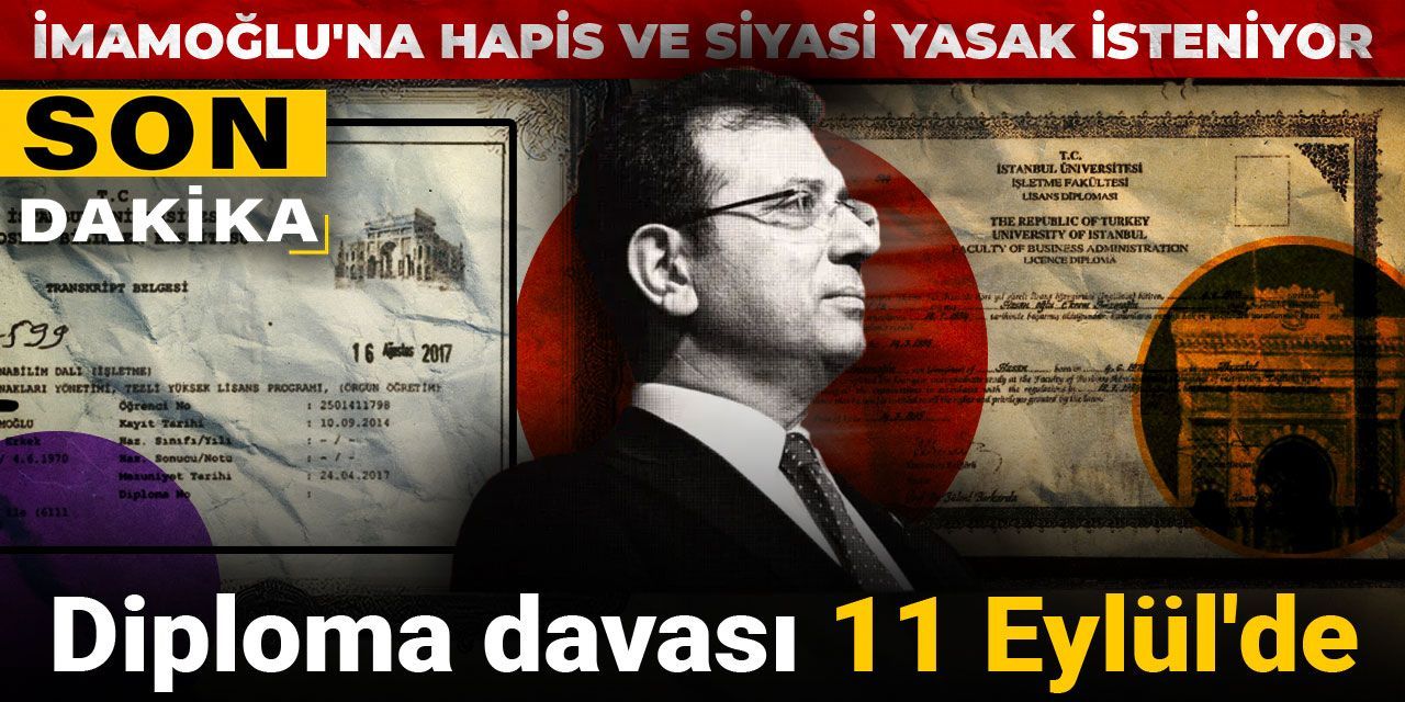 Silivri'deki Marmara Cezaevi'nde tutuklu bulunan İstanbul Büyükşehir Belediye (İBB) Başkanı ve CHP'nin cumhurbaşkanı adayı Ekrem İmamoğlu'nun "lisans diplomasının sahte olduğu" suçlamasına ilişkin yürütülen soruşturma tamamlanmış, hazırlanan iddianamede İmamoğlu'nun zincirleme şekilde ‘resmi belgede sahtecilik' iddiasından 2 yıl 6 aydan 8 yıl 9 aya kadar hapis cezasına çarptırılması ve siyasi yasak talep edilmişti.