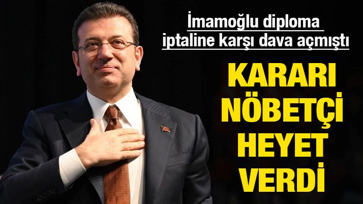 İstanbul Büyükşehir Belediye (İBB) Başkanı ve CHP'nin cumhurbaşkanı adayı Ekrem İmamoğlu'nun lisans diplomasının iptaline karşı İstanbul 5. İdare Mahkemesi’nde açtığı davada yürütmenin durdurulması istemine ret kararı verildi. Kararın nöbetçi başkan ve nöbetçi üyeler tarafından alınması dikkat çekti.
