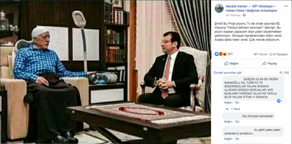 İmamoğlu'na Gülen montajıyla ilgili teyit.org daha önce "Fotoğrafın Ekrem İmamoğlu ve Fethullah Gülen’i bir masada gösterdiği iddiası" başlığıyla şöyle incelemişti: