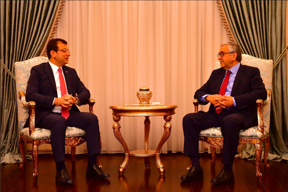 Ekrem İmamoğlu’nun yer aldığı fotoğrafın orijinal haline kendisinin Twitter hesabından ulaşılabiliyor. 11 Mayıs 2019 tarihli paylaşımda İmamoğlu’nun yanında Kuzey Kıbrıs Türk Cumhuriyeti Cumhurbaşkanı (KKTC) Mustafa Akıncı bulunuyor. Söz konusu fotoğraf incelendiğinde İmamoğlu’nun ellerinin aynı pozisyonda olduğu ve arkada bulunan perdenin iddia görseldekiyle aynı olduğu fark edilebiliyor.