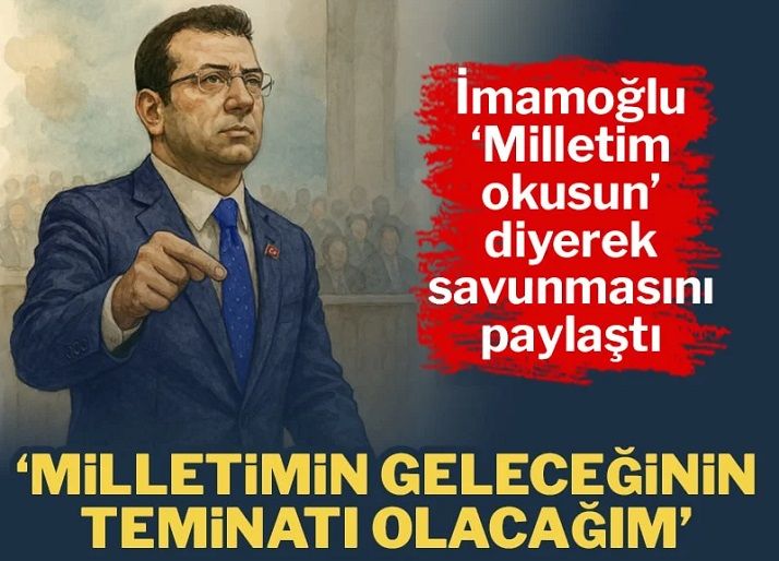İmamoğlu sosyal medya hesabından yaptığı paylaşımına, "Ben, İstanbul Büyükşehir Belediye Başkanı olduğum andan itibaren, şehri yönetirken, kanala, yalana, talana ve aynı zamanda ranta ve millet aleyhine olan her hususa karşı durduğum için bugün buradayım. Bugünkü mahkemede yaptığım savunmamı milletim okusun" notunu düştü.