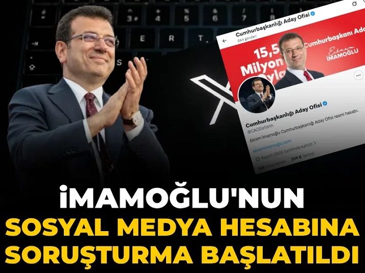 İstanbul Cumhuriyet Başsavcılığı, İBB Başkanı ve CHP'nin tutuklu Cumhurbaşkanı adayı Ekrem İmamoğlu'nun mesajlarını yayımladığı Cumhurbaşkanlığı Aday Ofisi (@CAOIletisim) isimli X hesabı hakkında "Cumhurbaşkanına hakaret" ve "Halkı yanıltıcı bilgiyi alenen yayma" suçlarından soruşturma başlattı.