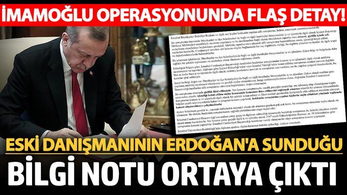 İstanbul Cumhuriyet Başsavcılığı, İstanbul Büyükşehir Belediye Başkanı Ekrem İmamoğlu'nun da aralarında bulunduğu 100'den fazla kişi hakkında çeşitli suçlardan gözaltı kararı verildiğini duyurmuştu. Dün sabah saatlerinde İmamoğlu'nun gözaltına alınması büyük yankı uyandırırken Cumhurbaşkanı ve AKP Genel Başkanı Recep Tayyip Erdoğan'ın İBB Başkanı olduğu dönemde hukuk danışmanı görevini üstlenen Prof. Dr. İzzet Özgenç “İstanbul Büyükşehir Belediye Başkanı hakkında başlatılan soruşturma ile ilgili olarak Sayın Cumhurbaşkanı'na gönderdiğim bilgi notudur” mesajıyla Erdoğan’a ilettiğini bilgi notunu sosyal medyadan paylaştı.
