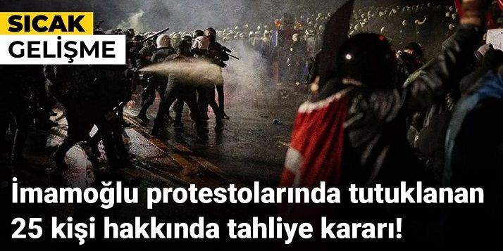 İstanbul Belediye Başkanı ve Cumhurbaşkanı Adayı Ekrem İmamoğlu’nun gözaltına alınmasının ardından başlayan protestolarda binlerce kişi gözaltına alındı. Birçok kişi de protestolara katıldığı gerekçesiyle tutuklanırken İstanbul 26. Asliye Ceza Mahkemesi'nde açılan davada heyet, tensiple birlikte, "2911 sayılı Toplantı ve Gösteri Yürüyüşleri Kanunu'na muhalefet" suçundan yargılanan ve tutuklu bulunan 25 kişi hakkında tahliye kararı verdi. Mahkeme, duruşmayı 19 Eylül 2025 tarihinde saat 09.30’a erteledi.