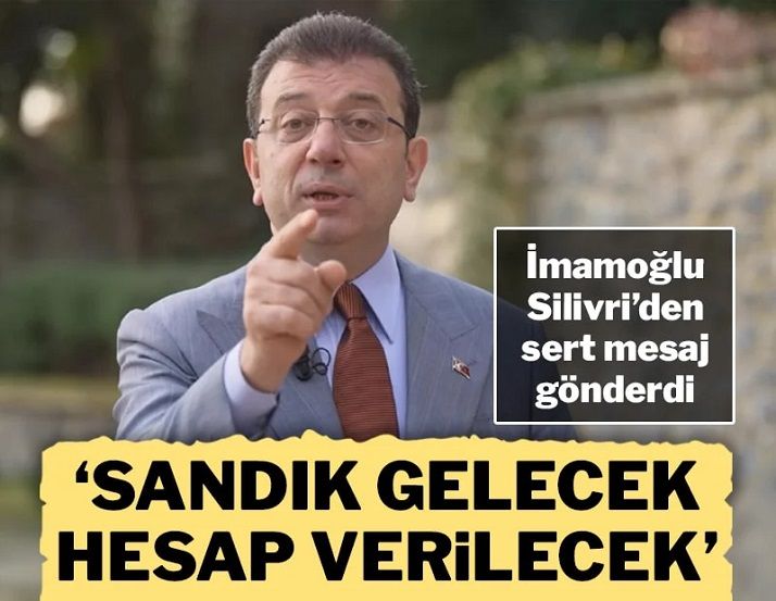 “Milli iradeyle kavgaya tutuşanlar, milletin aksi istikametinde yürüyenler elbette korkacak. Millet bunları vicdanında mahkum etmiştir, sandıkta da mahkum edecektir. Sandık gelecek, herkes yaptıklarının hesabını verecek. Bir pazar günü, adalet hasretiyle sandıklara koşacağız ve hep birlikte özgürlüğün, eşitliğin, kardeşliğin iktidarını kuracağız. Yoksulluğu, çaresizliği, umutsuzluğu bu topraklardan söküp atacağız. Adil, özgür ve müreffeh bir ülkede hep birlikte güven içinde yaşayacağız. Her şey çok güzel olacak. Ekrem İmamoğlu. Silivri zindanı.”