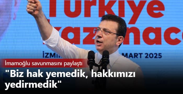 Silivri'de tutuklu bulunan Ekrem İmamoğlu, Cumhurbaşkanlığı Aday Ofisi hesabı üzerinden savunmasının tam metnini paylaştı. İmamoğlu şu mesajı yazdı: