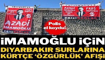 İmamoğlu için Diyarbakır Surlarına Kürtçe 'özgürlük' afişi