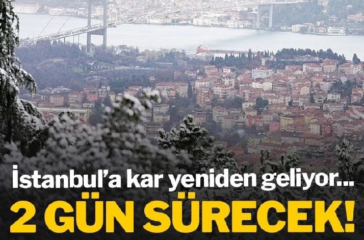 İstanbul’da hafta sonundan itibaren soğuk havanın yeniden etkili olması beklenirken, 18 Ocak Pazar ve 19 Ocak Pazartesi günleri kar ve karla karışık yağmur görüleceği tahmin ediliyor. Kentte pazar günü sıcaklıkların 2 ila 5 derece, pazartesi günü ise 3 ila 6 derece arasında seyretmesi öngörülüyor.