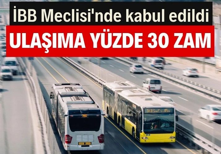 İBB Tarife Komisyonu ile Ulaşım ve Trafik Komisyonu tarafından hazırlanan ve bugünkü İBB Meclisi toplantısına gönderilen gündem maddesinde toplu ulaşım ile taksi ve okul servislerine yüzde 30 zam yapılması istendi. Zam talebi oy çokluğuyla kabul edildi.