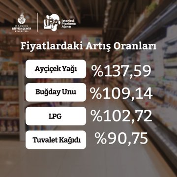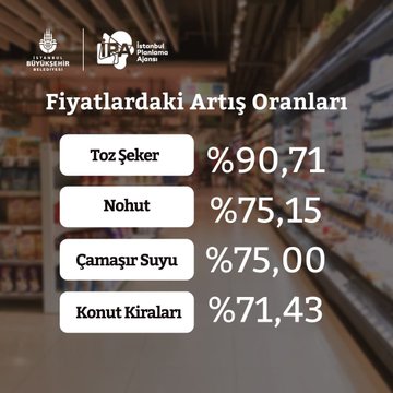 İstanbul Planlama Ajansı'nın (İPA) verilerine göre ise İstanbul’da yaşam maliyeti bir yılda %50,18 arttı. Gıda, kişisel bakım ve temizlik ürünleri, konut kiraları gibi pek çok alanda ciddi fiyat artışı yaşandı.