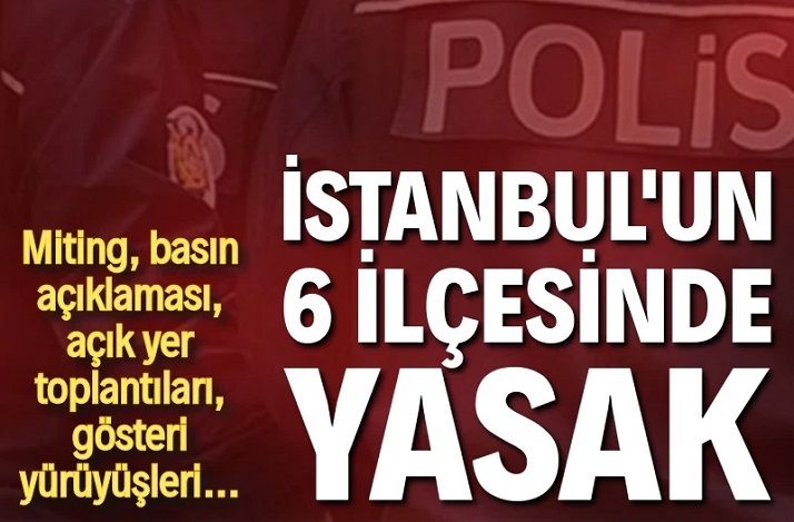 "İlimiz Beşiktaş, Beyoğlu, Eyüpsultan, Kağıthane, Sarıyer ve Şişli İlçelerinde her türlü miting, basın açıklaması, açık yer toplantıları ile gösteri yürüyüşleri, çadır kurma, stant açma, oturma eylemi, imza kampanyası, anma toplantısı vb. sayılı Toplantı ve Gösteri Yürüyüşleri Kanunu'nun 17. ve 19. 10.09.2025 günü saat 23.59'a kadar yasaklanmıştır."