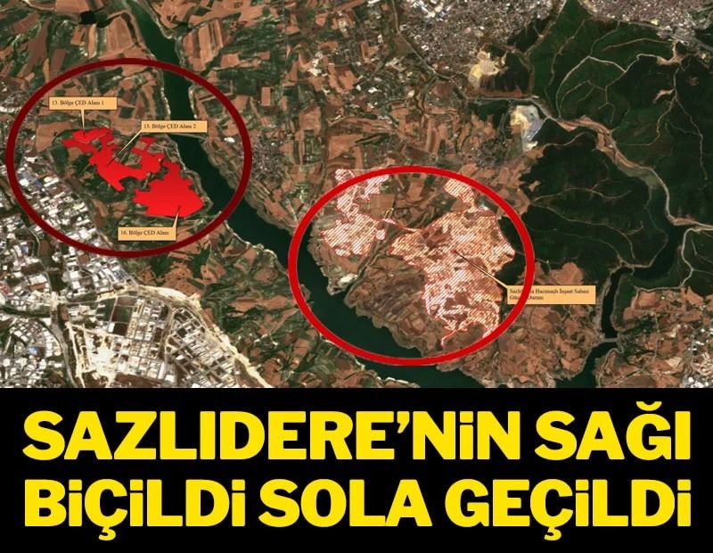 Çevre, Şehircilik ve İklim Değişikliği Bakanlığı, Kanal İstanbul Projesi güzergahında Sazlıdere Barajı’nın batısında yer alan ve 17 Haziran’da imar planları ilan edilen 2.5 milyon metrekarelik alanda 9.957 konut için 10 ihale yaptı. Bu konutlar için Bakanlığın eçed duyuru sayfasında ÇED raporları yayımlandı. Böylece İçme Suyu Havzalarını Koruma Yönetmeliği ile korunan Sazlıdere Barajı’nın iki yanı da inşaatlarla sarılmış olacak.