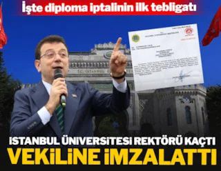Tuncay’a yapılan tebligatta, şu ifadelere yer verildi: “Üniversitemiz Yönetim Kurulunun 18.03.2025 tarihli ve 61 nolu toplantısında alınan 3 sayılı hükmü ile; İşletme Fakültesi İşletme (İngilizce) Lisans Programına 1990 yılında usulsüz yatay geçiş yapmanız nedeniyle, yatay geçiş kararınızın ve bu karara dayalı olarak elde ettiğiniz mezuniyetinizin ve diplomanızın “yokluk” ve “açık hata” gerekçeleriyle geri alınmak suretiyle iptal edilmesine karar verilmiştir. Karara istinaden İşletme Fakültesi İşletme (İngilizce) Programı Lisans mezuniyetiniz ve diplomanız iptal edilmiştir.” Ekrem İmamoğlu’nun da aralarında bulunduğu dokuz kişinin diplomaları veritabanından silindi. Bu arada diploma iptal kararı İmamoğlu’na hâlâ ulaşmadı. Diploma geçen hafta İÜ’nün veri tabanından silinmişti. İmamoğlu’nun yüksek lisans diplomasının ise veritabanında durduğu dikat çekmişti. Bu duruma göre İmamoğlu hâlâ yükseköğrenim mezunu.