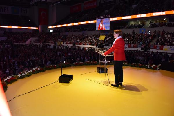 Meral Akşener'in salona girişi sırasında büyük bir coşku yaşandı. Sık sık "Cumhurbaşkanı Meral Akşener" ve "Gençlerin umudu Meral Akşener" sloganları atıldı.