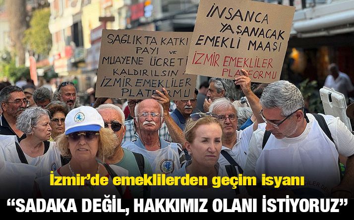 İzmir Emekliler Platformu üyeleri, düşük emekli maaşları ve hayat şartlarına karşı Alsancak’tan Türkan Saylan Kültür Merkezi’ne yürüyerek basın açıklaması yaptı. Açıklamada, “Sadaka değil, hakkımız olanı istiyoruz” denildi.