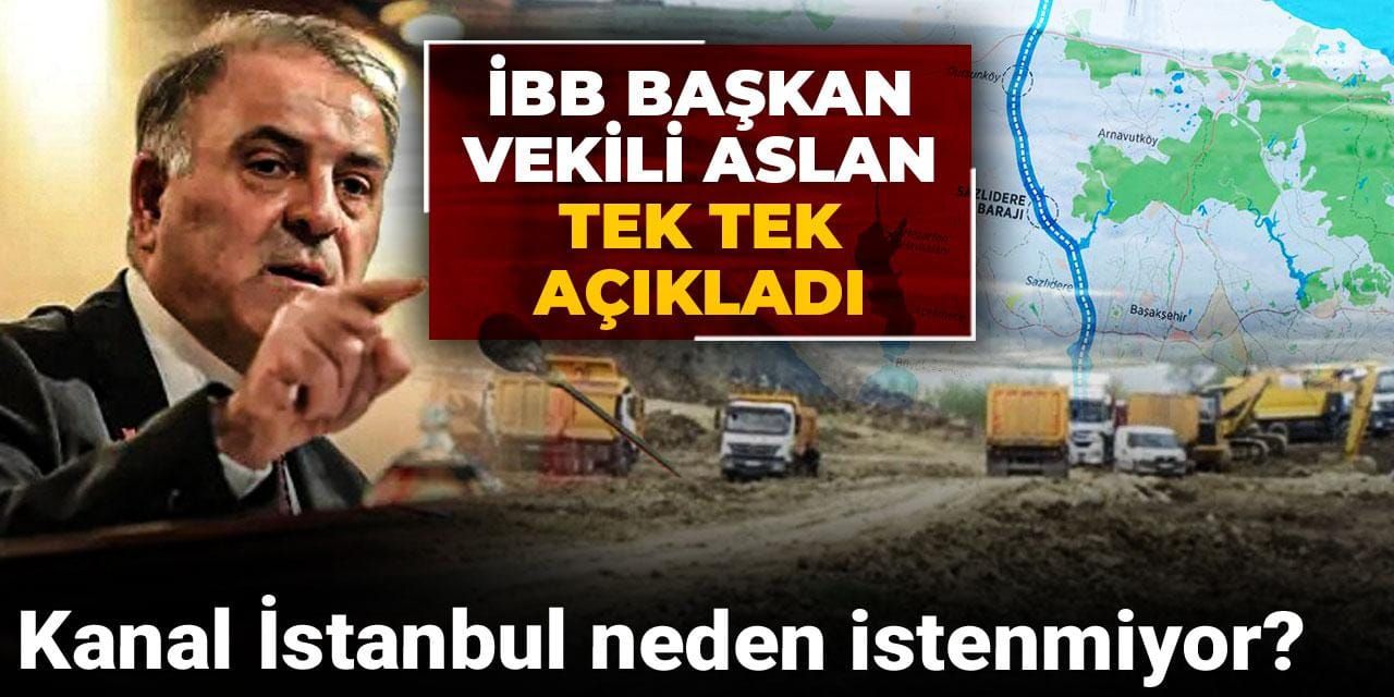 Kanal İstanbul'a neden karşı olduklarını söyleyen Aslan, "Şimdi Kanal İstanbul'un herkes zannediyor ki biz Kanal İstanbul'a İstanbul Büyükşehir Belediyesi olarak sadece politika olarak karşıyız. Asla böyle bir şey yok politik olarak bir duruşumuz olabilir. Ekonomik ve sosyal koşullarımız var. Bugün Türkiye'de yaşanan kuraklığı görüyorsunuz. Siz Sazlıbosna Barajı'nı kaldırdığınızda oradan o barajın o su toplama alanının oluşması için dört yeni baraj yapmanız lazım. Biyolojik arıtma tesisleri yapmanız lazım, altyapı yapmanız lazım atık su kanalları yapmanız lazım, tünelleri yapmanız lazım, temiz su hatları kurmanız lazım, yağmur suyu hatları kurmanız lazım. Biz bu ülkenin kaynaklarının bu ülkede kalmasını istiyoruz. Milletin parasının millete harcanmasını istiyoruz. Sadece İSKİ'nin, Kanal İstanbul yapılacaksa ki biz o coğrafyada onun yapılmasına karşıyız" dedi.
