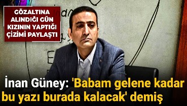 İnan Güney gözaltına alındığı gün kızının yaptığı çizimi paylaştı: 'Babam gelene kadar bu yazı burada kalacak' demiş9 izlenme