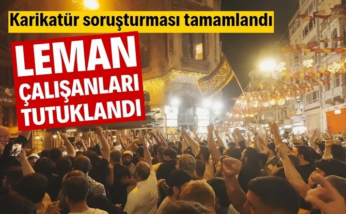 Gözaltına alınanlar ise Leman Dergisi'nin yazı işleri müdürü Zafer Aknar, grafikeri Cebrail Okçu, karikatürün sahibi Doğan Pehlivan ve müessese müdürü Ali Yavuz.
