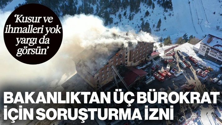 Olayla ilgili son olarak, Kültür Bakanlığı tarafından, yangının meydana geldiği tarihte Kontrolörler Kurulu Başkanvekili olan Levent Kırcan, otelin son denetimini yapan kontrolörler Barış Başayvaz ve Abdülkadir Eren hakkında soruşturma izni verilmesine karar verildi.