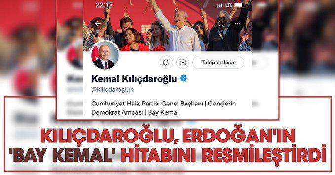 CHP lider Kılıçdaroğlu'nun kişisel Twitter ve Instagram hesaplarındaki biyografi kısımlarında "Gençlerin demokrat amcası" ifadesi yer alıyordu. Kılıçdaroğlu, Erdoğan'ın kendisi için sıklıkla kullandığı "Bay Kemal" hitabı için bugün Balıkesir mitinginde Erdoğan'a göndermede bulundu. CHP lideri akşam saatlerinde ise her iki sosyal medya hesaplarındaki biyografi bölümlerine "Bay Kemal" hitabını ekledi.