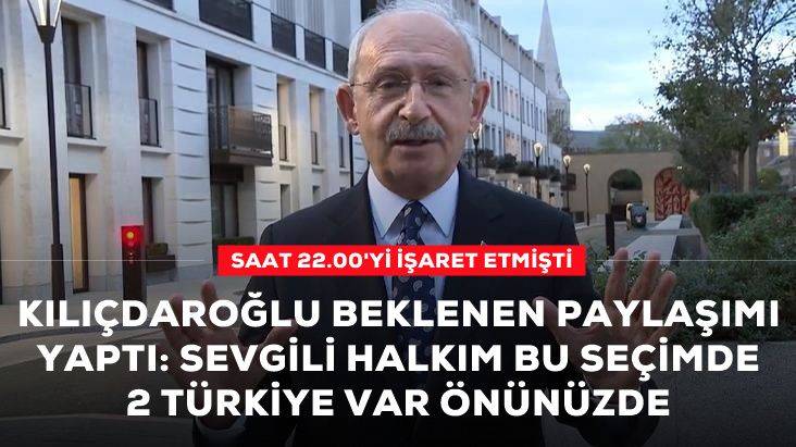 Kılıçdaroğlu saat 22:00'ye işaret ederek paylaşımda bulundu: Sevgili halkım bu seçimde 2 Türkiye var önünüzde