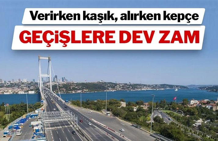 Zamdan önce 15 Temmuz Şehitler ve Fatih Sultan Mehmet köprülerinden otomobiller için geçiş ücreti 33 lira, Osmangazi Köprüsü'nden 555 lira, Yavuz Sultan Selim Köprüsü'nden 70 lira, 1915 Çanakkale Köprüsü'nden ise 585 liraydı.
