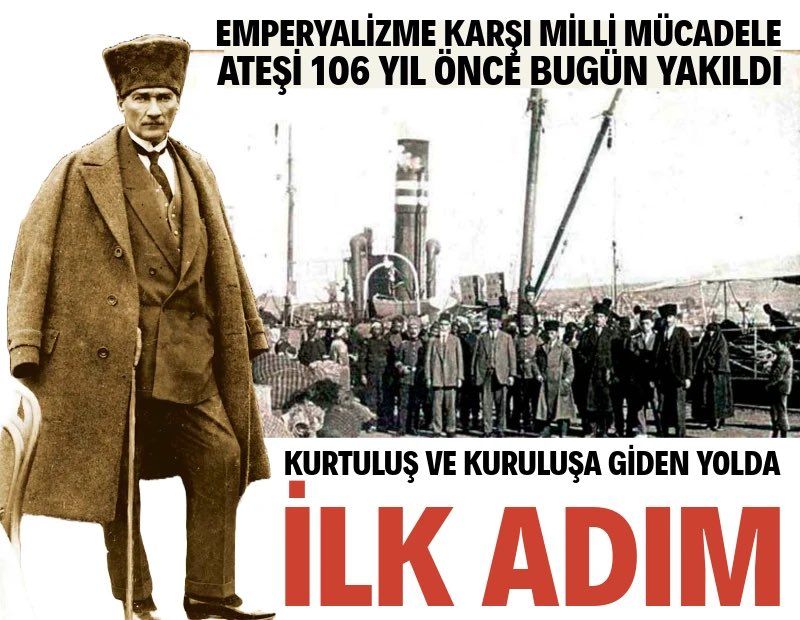 Ulu Önder ve beraberindekiler, üç gün süren yolculuktan sonra 19 Mayıs’ta Samsun’a ulaştı. Tütüncü İskelesi’ne ilk adımı attıklarında vatan harap haldeydi. Ve asıl önemli yolculuk şimdi başlıyordu. Vatanı düşman işgalinden kurtarmak, bağımsız ve çağdaş bir ülke kurmak için mücadele zamanıydı. Atatürk, Erzurum ve Sivas kongreleriyle tüm milleti bağımsızlık ateşi etrafında birleştirdi. Önce vatanı düşmandan temizledi, sonra tüm dünyanın parmakla gösterdiği çağdaş Türkiye Cumhuriyeti’ni kurdu. İstanbul’da düşman donanmasına bakarken söylediği o sözü gerçek kıldı: Geldikleri gibi gittiler… Milli Mücadele sonunda 29 Ekim 1923’te kurulan Türkiye Cumhuriyeti, bu yıl 102. yaşına giriyor.
