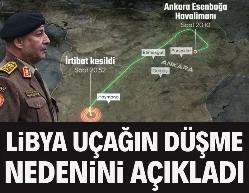 "Libya Genelkurmay Başkanı Orgeneral Muhammed Ali Ahmed Al Haddad ve maiyetindeki 4 kişi ile 3 mürettabatı taşıyan özel bir jet, 20.17’de Esenboğa Havalimanından kalktıktan sonra 20.33’te hava kontrol merkezine elektrik arızasından kaynaklı acil durum bildirmiş ve acil iniş talebinde bulunmuştur.