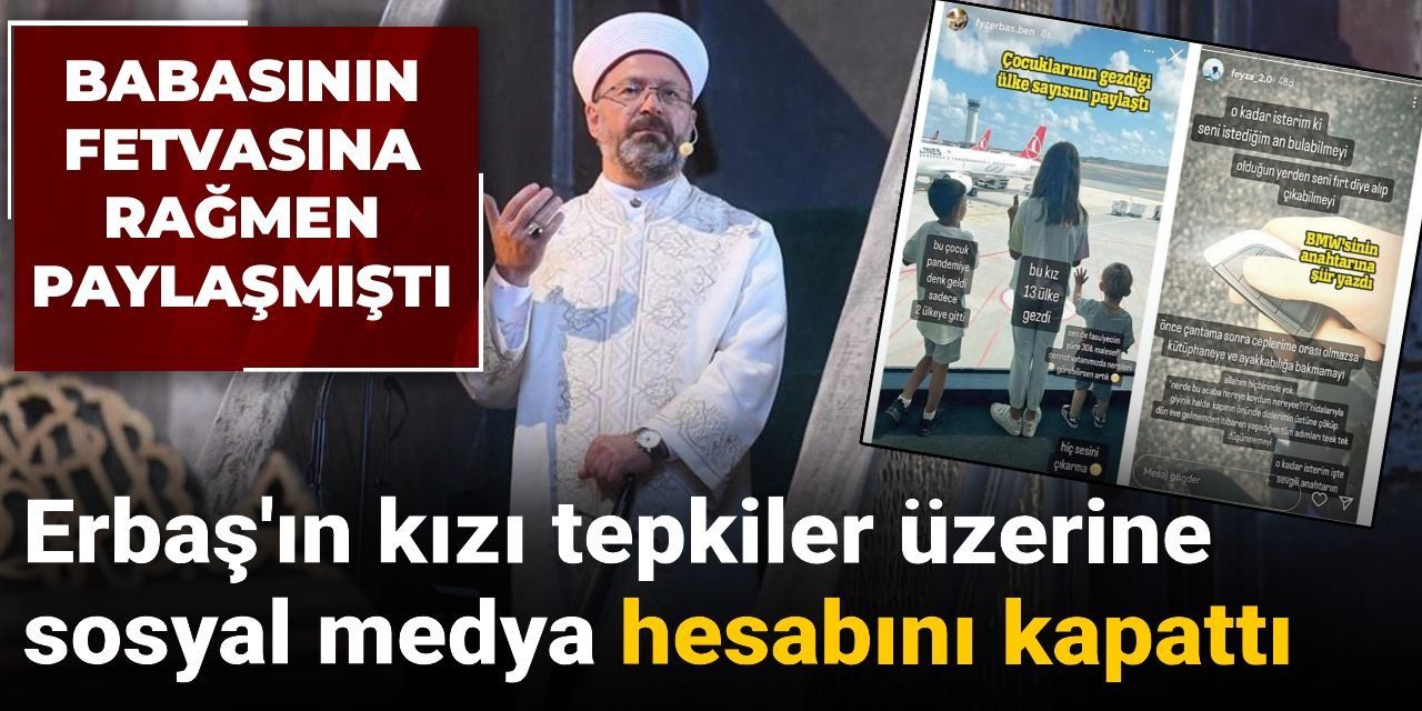 Yaptığı paylaşımlara kamuoyundan yoğun tepkiler gelen Erbaş'ın sosyal medya hesabını kapattığı görüldü.
