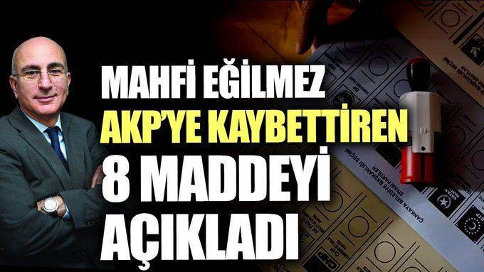 Mahfi Eğilmez'in yaptığı analize göre, 31 Mart Mahalli İdareler Genel Seçimi'nde AKP'nin kaybetmesinde etkili olan faktörler sırayla şunlar: