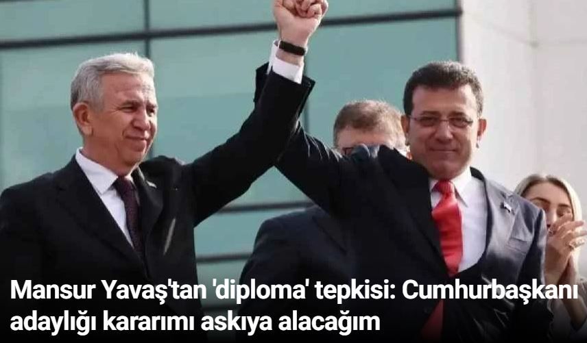 Ankara Büyükşehir Belediye (ABB) Başkanı Mansur Yavaş, İstanbul Üniversitesi'nin İstanbul Büyükşehir Belediye (İBB) Başkanı Ekrem İmamoğlu'nun diplomasının iptaline yönelik karara tepki gösterdi.