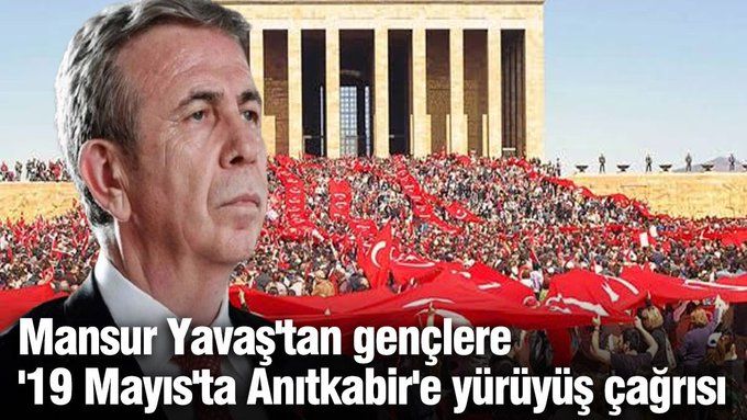 Ankara Büyükşehir Belediye Başkanı Mansur Yavaş, sosyal medya hesabından yaptığı paylaşımda, gençleri yarın yapılacak yürüyüşe davet etti. Yavaş, paylaşımında "19 Mayıs, sadece bir bayram değil; bu milletin yeniden ayağa kalkışının, bağımsızlığa yürüyüşünün adıdır. Gazi Mustafa Kemal Atatürk’ün gençliğe emanet ettiği bu büyük günü, hep birlikte yaşamak için buluşuyoruz. 19 Mayıs Pazartesi günü saat 11.00’de Güvenpark’tan Anıtkabir’e yürüyoruz. Tüm gençlerimizi ve Ankaralı hemşehrilerimi yürüyüşe davet ediyorum" ifadelerini kullandı.