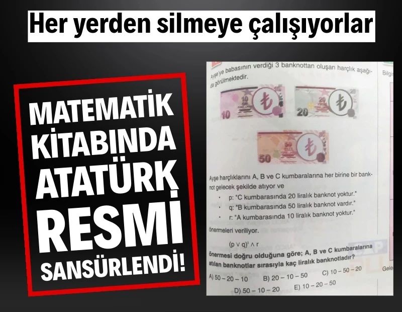 Gündeme ilişkin çeşitli konuların yer aldığı ünlü sosyal medya platformu Reddit’te dün skandal bir paylaşım yapıldı. Eğitim alanında yayımladığı deneme sınavlarıyla bilinen Çap Yayınları’nın matematik soru bankası kitabından çıkan soru gündeme damga vurdu. Matematik probleminin olduğu soruda TL banknotlarında Atatürk resmi kapatıldı. Bu gönderiye sosyal medya üzerinden büyük tepki geldi. Atatürk resmini kapatılması “sansür” olarak yorumlandı.