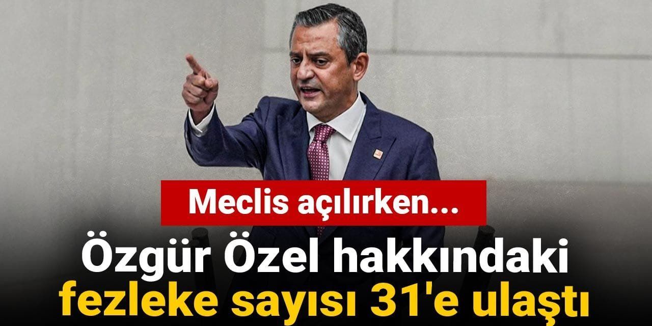 1 Ekim 2025'te açılacak olan Meclis'te hazırlıklar sürerken, CHP Genel Başkanı Özgür Özel hakkında TBMM'ye gönderilen fezleke sayısının 31 olduğu ortaya çıktı. Meclis kulislerinde, son haftalarda artan siyasi gerilimle birlikte bu sayının önümüzdeki süreçte yeni şikâyetlerle daha da artabileceği konuşuluyor.