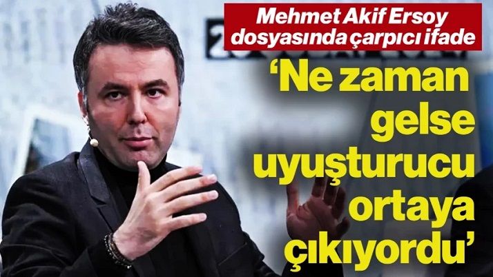 Yine "Bulundukları ortamlarda uyuşturucu madde ortaya çıkıyordu ve büyük ihtimalle Akif getiriyordu" diyerek uyuşturucu tedariği konusunda Mehmet Akif Akif Ersoy işaret etti.