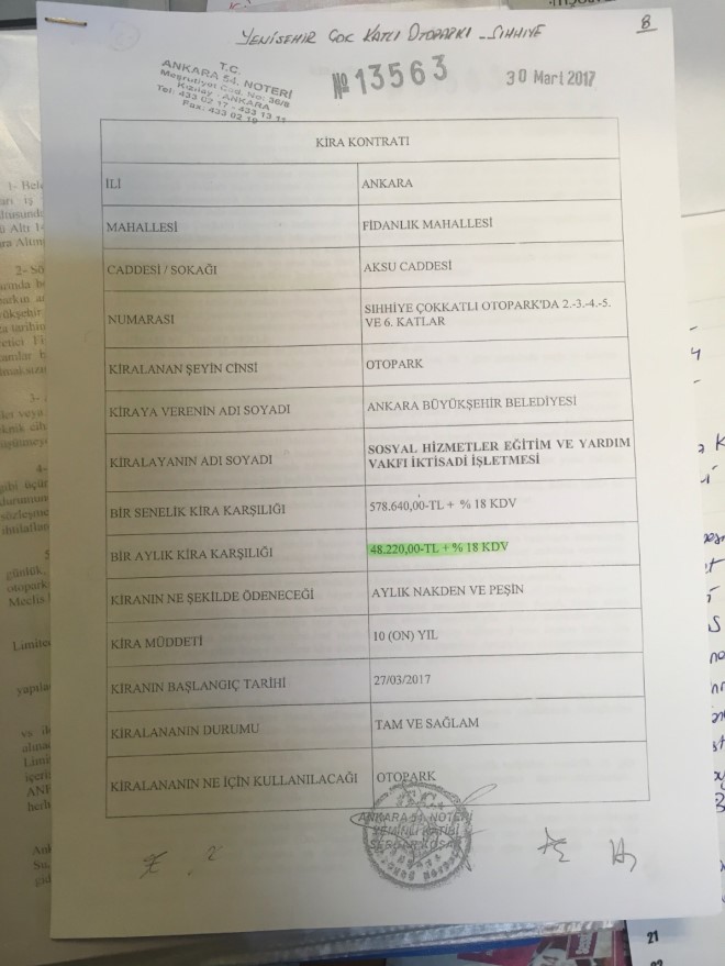 Öte yandan, Kocatepe Cami kapalı otoparkının üzerindeki ticari işletmelerden biri, yıllık 292 bin TL’ye SOS Vakfı’na kiralanırken; vakfın, bu işletmeyi aylık 65 bin TL’ye bir süpermarkete kiraladığı bilgisine de ulaşıldı.