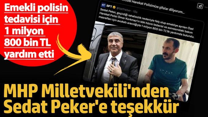Sedat Peker, felç olan ve emekliye ayrılan Özel Harekat Polisi Ömer Korkmaz’a yardımda bulundu. Peker, Korkmaz’ın tedavisi için 1 milyon 800 bin TL bağışladı. Bağış, Peker'in avukatı aracılığıyla Korkmaz’a gönderildi. Bu yardım, Korkmaz’ın kök hücre tedavisi ve sonrasındaki bakım masraflarını kapsıyor.