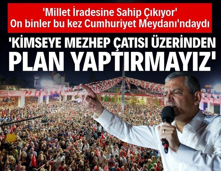 İmamoğlu'nun mesajının okunmasının ardından kürsüye CHP lideri Özgür Özel çıktı. Meydanı hınca hınç dolduran kalabalığa seslenen Özel coşkulu bir konuşma yaptı. Konuşmasında Erdoğan iktidarına yüklenen Özel şunları kaydetti: