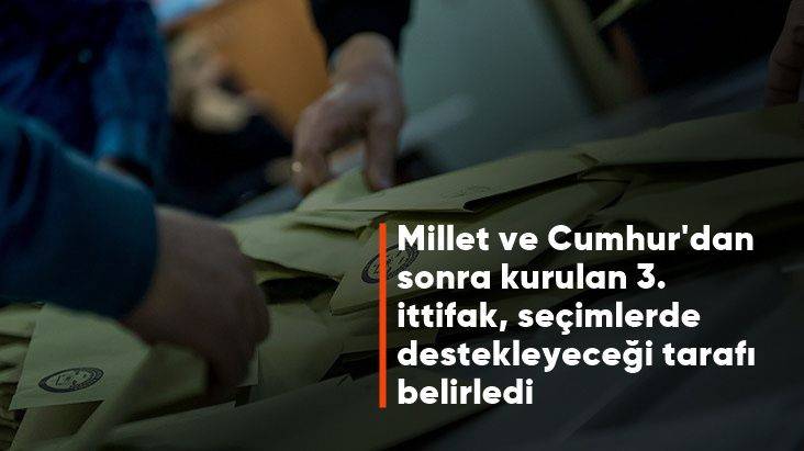 Millet ve cumhur ittifakından sonra kurulan 3. ittifak da seçimlerde destekleyeceği tarafı belirledi.