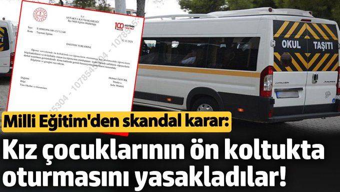 Hatay’ın Antakya İlçe Milli Eğitim Müdürlüğü, ilçedeki okullara kız çocuklarının servislerde ön koltuklara oturtulmasının yasaklandığını ifade eden skandal bir belge gönderdi.