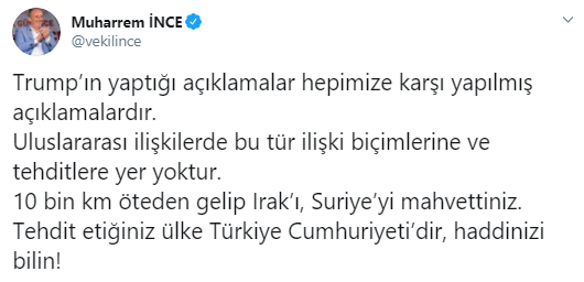 Twitter hesabından paylaşım yapan İnce, şu ifadeleri kullandı:
