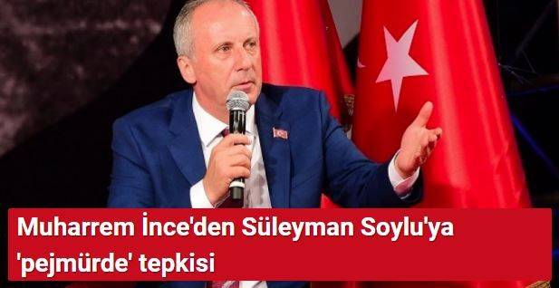 Muharrem İnce, sosyal paylaşım sitesi Twitter hesabından yaptığı açıklamada Süleyman Soylu'şa şöyle seslendi: