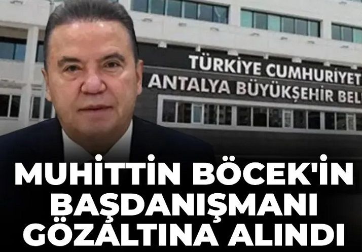 Antalya Büyükşehir Belediyesi'nde bir gözaltı daha yaşandı. Tutuklu belediye başkanı Böcek'in başdanışmanı Cem Oğuz gözaltındı. Oğuz ile beraber bir belediye çalışanın da gözaltına alındığı öğrenildi.