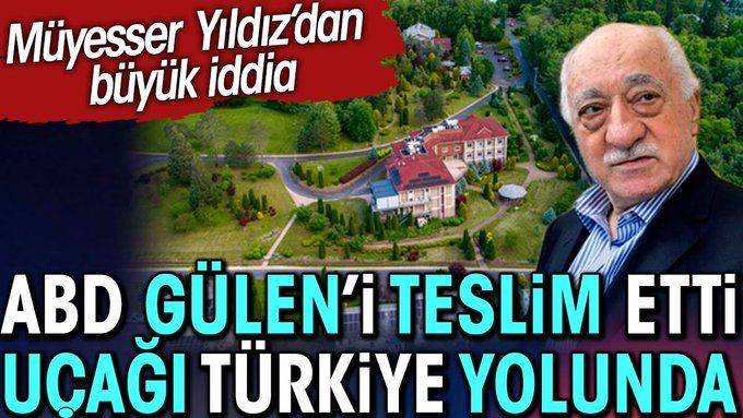 Gazeteci Müyesser Yıldız, bomba bir iddiada bulundu. Yıldız'a göre ABD FETÖ elebaşı Fetullah Gülen'i Türkiye'ye teslim etti. Gülen'i taşıyan uçağın ise Türkiye yolunda olduğu belirtildi.